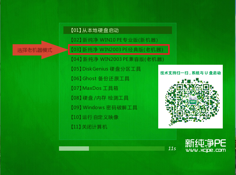 3、启动到U盘主页面,选择【03】运行PE老机版;